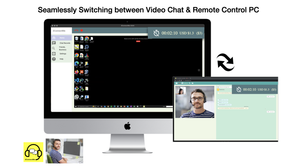 2ConnectMe Remote Support Suite with Live Chat, Video Consulting and Automatic Billing tranforms customer support and professional consulting into an online service revenue generator.
