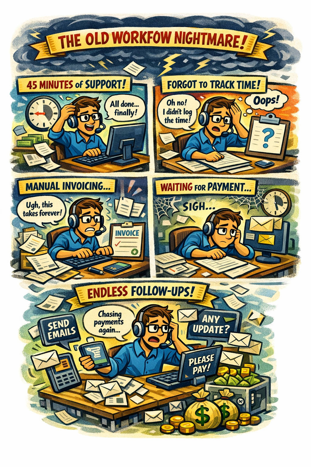 The biggest barrier to monetizing support has always been administrative. The old workflow is a nightmare: