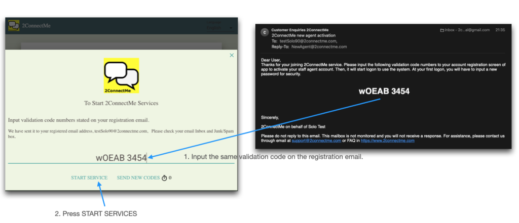 An validation code number is sent to your registered email address. Just enter those numbers on the registration screen and it will divert you to agent desktop screen. If you do not find the registration email in your Inbox in 1 minute, please check your Junk/Spam mailbox. Sometimes, email systems wrongly treat it as a Junk/Spam mail.