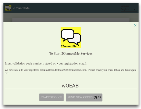 Such validation codes should be copied to staff registration form and then START SERVICES button.