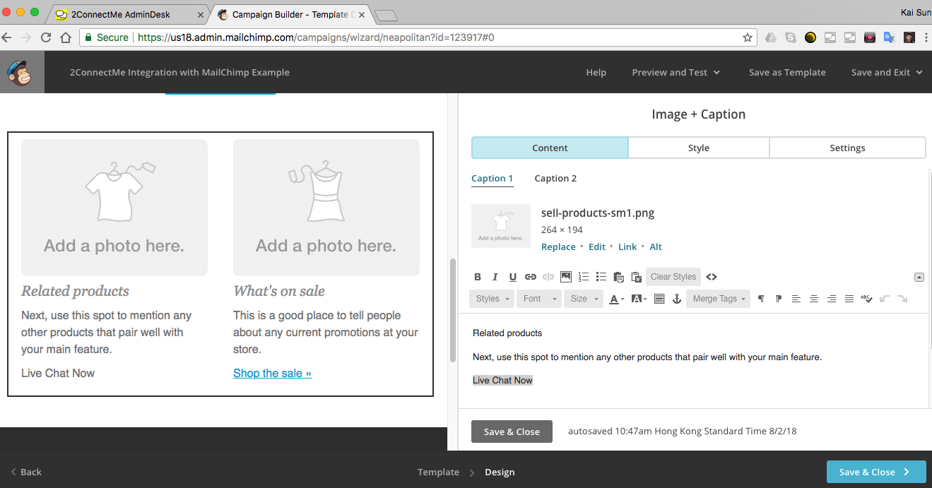 MailChimp is one of the most common used email marketing campaign tools. The integration has never been easy before. Just paste URL address of chat room (2ConnectMe) to either action buttons or linked texts (MailChimp) as illustrated in the examples below.