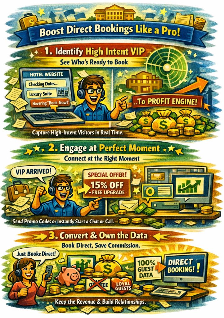 See who’s ready to book Automatic Capture high-intent visitors who are on your site—browsing specific dates, checking suites, hovering over “Book Now.”. Just real-time intent signals.