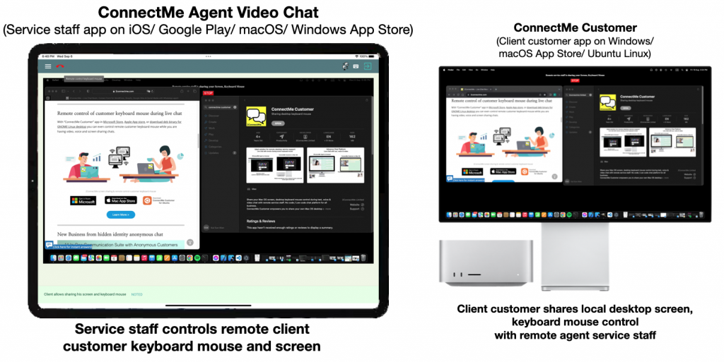 The ConnectMe Agent App eliminates the friction of traditional remote support by empowering service staff agents to type and control customer PCs as if they were sitting right in front of them. With direct keyboard passthrough and real-time mouse synchronization, agents can work faster and more intuitively—no extra clicks or mode switches required.