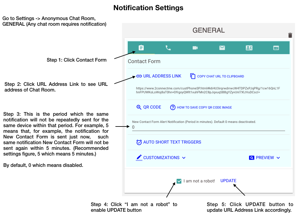 - Instead of a single contact form for all the hotlines / chat room, you are provided with a new contact form with independent styles and configured format for each of hotline chat room. That is the reason you have to reconfigure your existing hotline chat room GENERAL, e.g., with a new contact form. (Refer to screen below)